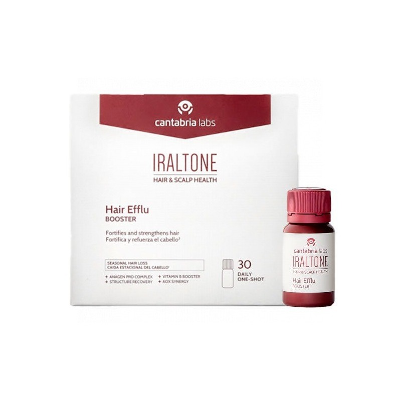Iraltone hair efflu booster 30 monodosis es un tratamiento capilar intensivo en formato monodosis diseñado para frenar la caída del cabello y estimular su crecimiento desde la raíz. Su fórmula concentrada actúa directamente sobre el folículo piloso, fortaleciendo la fibra capilar y favoreciendo un cabello más fuerte, denso y saludable. Está indicado para hombres y mujeres con caída difusa o estacional, debilidad capilar o pérdida de densidad. Frena la caída del cabello y estimula su crecimiento. Fortalece la fibra capilar y mejora su resistencia. Nutre y revitaliza el folículo piloso desde la raíz. Protege el cabello del estrés oxidativo. Formato monodosis para una aplicación cómoda y precisa.